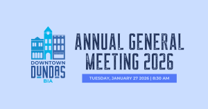 NOTICE OF 2026 ANNUAL GENERAL MEETING – DUNDAS BIA 🗓️ Date: Tuesday January 27 2026⏰ Time: 830am📍 Location: Collins Brewhouse, 33 King Street West, Dundas